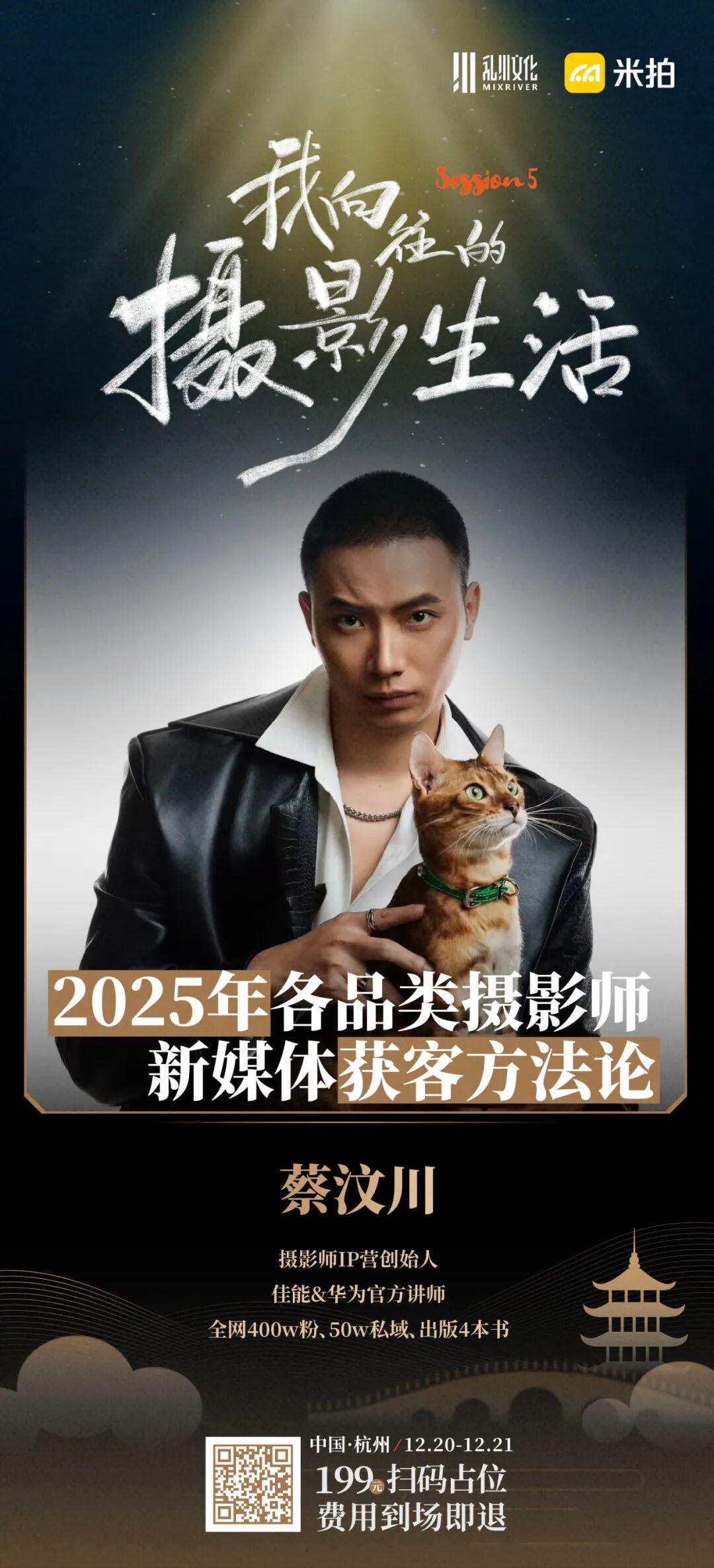此次杭州的大会,即是帮你打开运营想路的 “加快器”。望望那些走在前边的照相师是如何阻拦逆境的,找到属于我方的 “照相长进”!